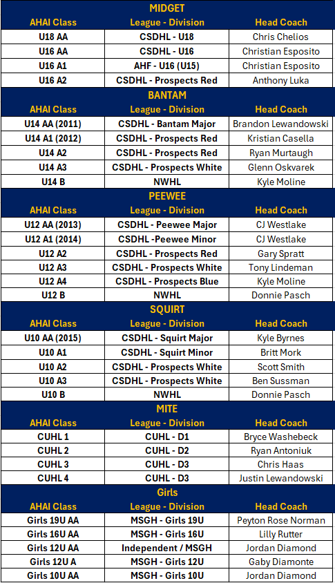 Coach Chelios has a long and illustrious career as a hockey player and coach. As a player, he played every level, house through AAA. After high school graduation, he chose the path that led him through the ranks of Junior Hockey, then as a NCAA D1 College player and Captain at the University of Wisconsin - Superior. Chris then found himself playing in the semi-professional leagues across Europe and the United States until he turned to coaching. Beginning at the Sabre mite program he worked his way up to where you find him today as the Midget Hockey Director and head coach for the 18U CSDHL team. Chris has led the club to multiple State Championships and National Appearances. During his professional tenure he has also coached high school hockey at Naperville Central and at the collegiate level for the Robert Morris Women's ACHA Hockey team.