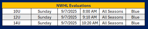 | 12U NWHL | X | X | |||